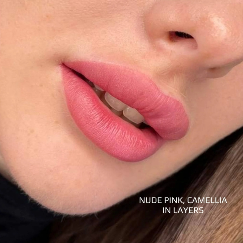 Il rosa più chiaro della palette contiene biossido di titanio finemente macinato. Nella sua forma pura, può essere utilizzato solo su labbra sbiancate, chiare, non fredde e ricche e calde per attutire il colore naturale delle labbra e creare un effetto cipria . In miscela si comporta bene con i pigmenti rosa brillante.