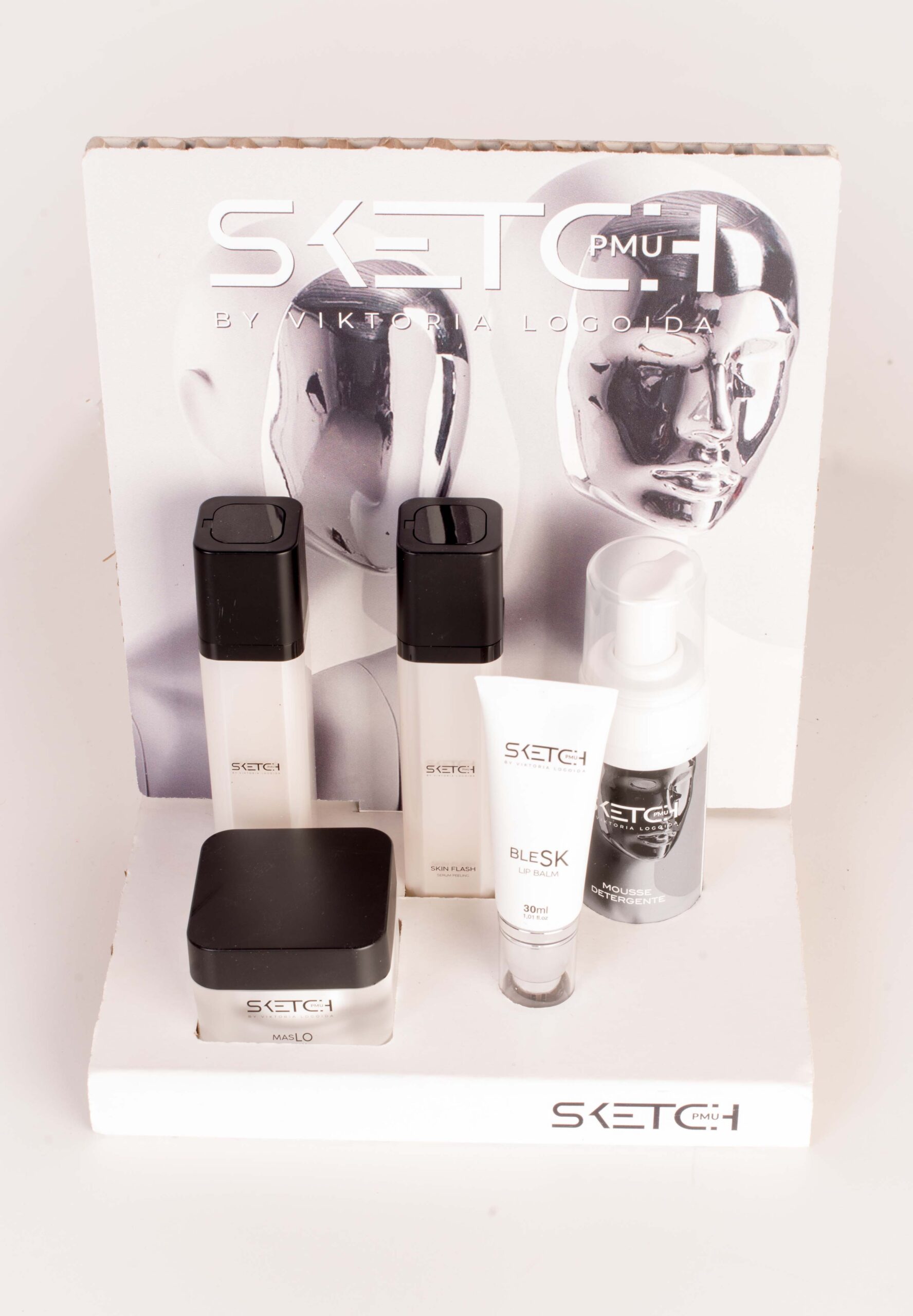 Tutti i prodotti della linea Sketch per il Microneedling più efficace di sempre. Rivoluziona il metodo classico del microneedling sostituendo i tradizionali acidi (glicolico, mandelico, lattico, fitico) che usi prima di effettuare il passaggio che possono creare arrossamenti importanti e che vanno neutralizzati nel giusto momento con i benefici dell’acido ialuronico di altissima qualità direttamente sotto pelle. Massima sicurezza per ottenere i massimi risultati. In omaggio gli utilissimi accessori per needling viso. Nel pratico espositore bianco Sketch. Tutti i singoli prodotti sono vendibili separatamente anche alla tua cliente come kit casa tra un trattamento di cabina e l’altro con tuo guadagno del 100% su ogni prodotto. (Catalogo senza prezzi con spiegazione di utilizzo dei prodotti a casa da dare alla cliente e sito internet con prezzi per la cliente su www.sketchpmu.com