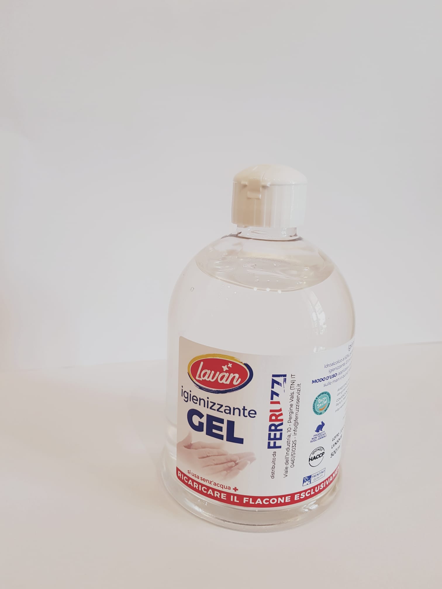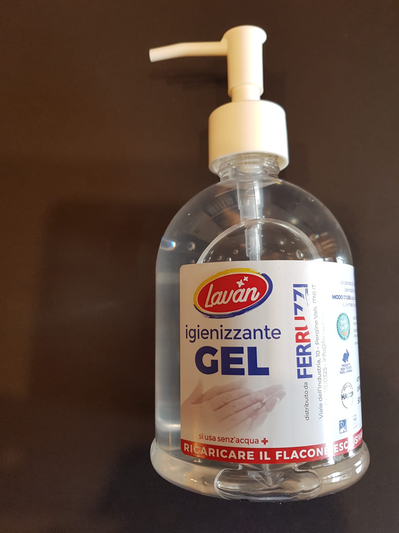 Gel disinfettante detergente liquido battericida per cute integra ad uso esterno per mani e per la pelle.