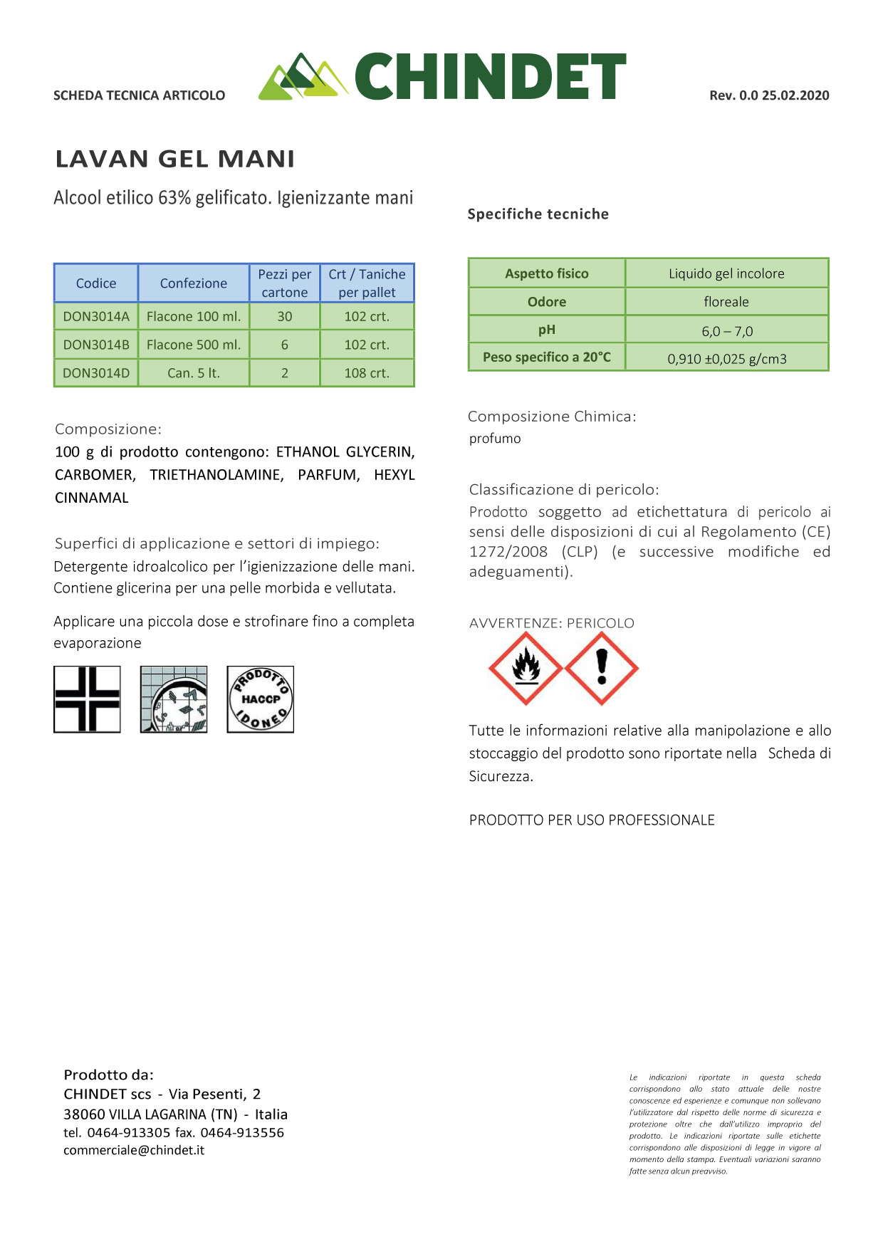 Idoneo HACCP prodotto da CHINDET